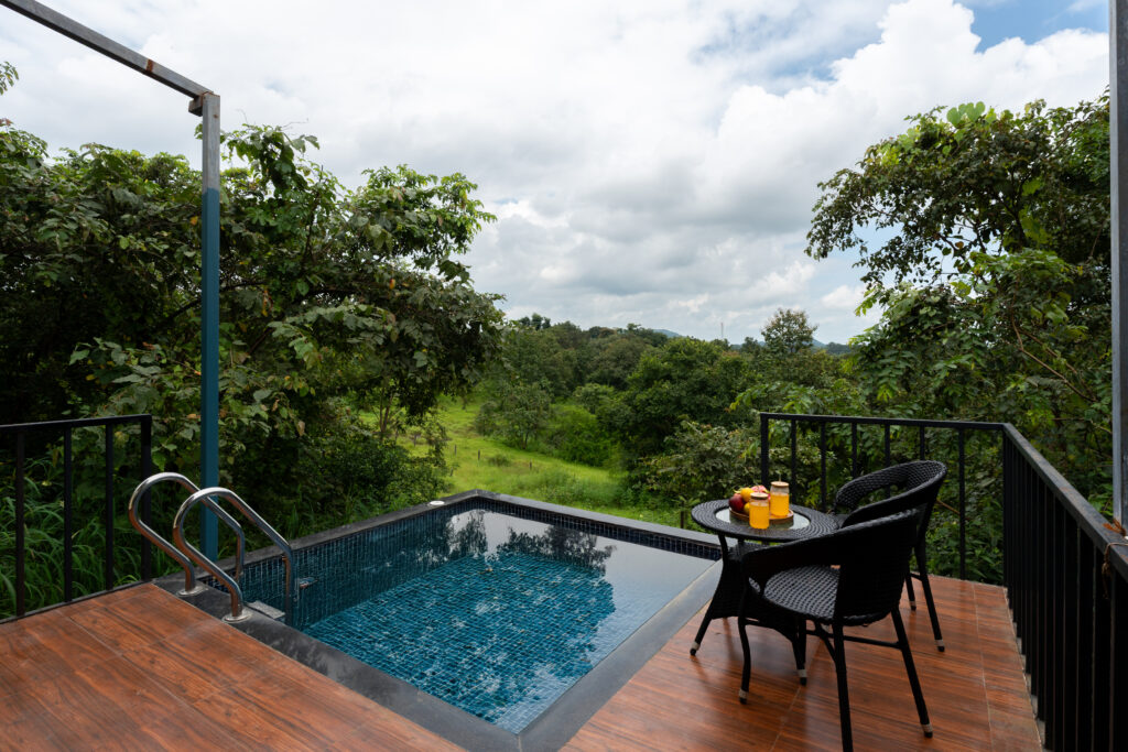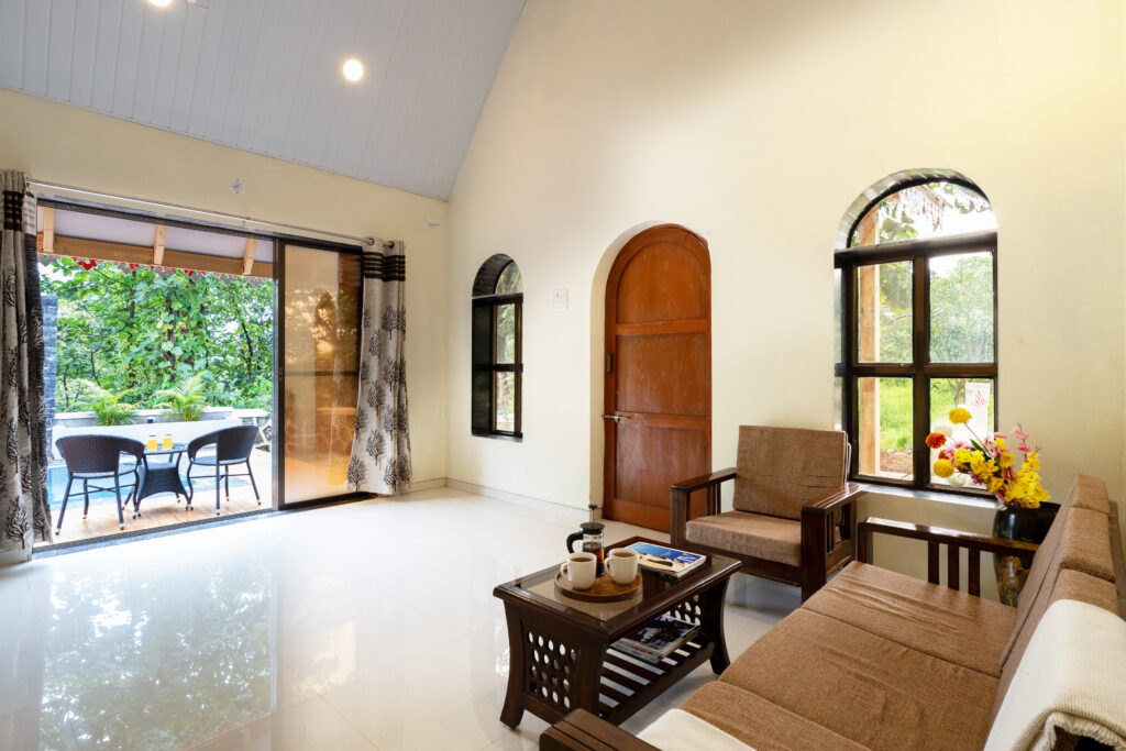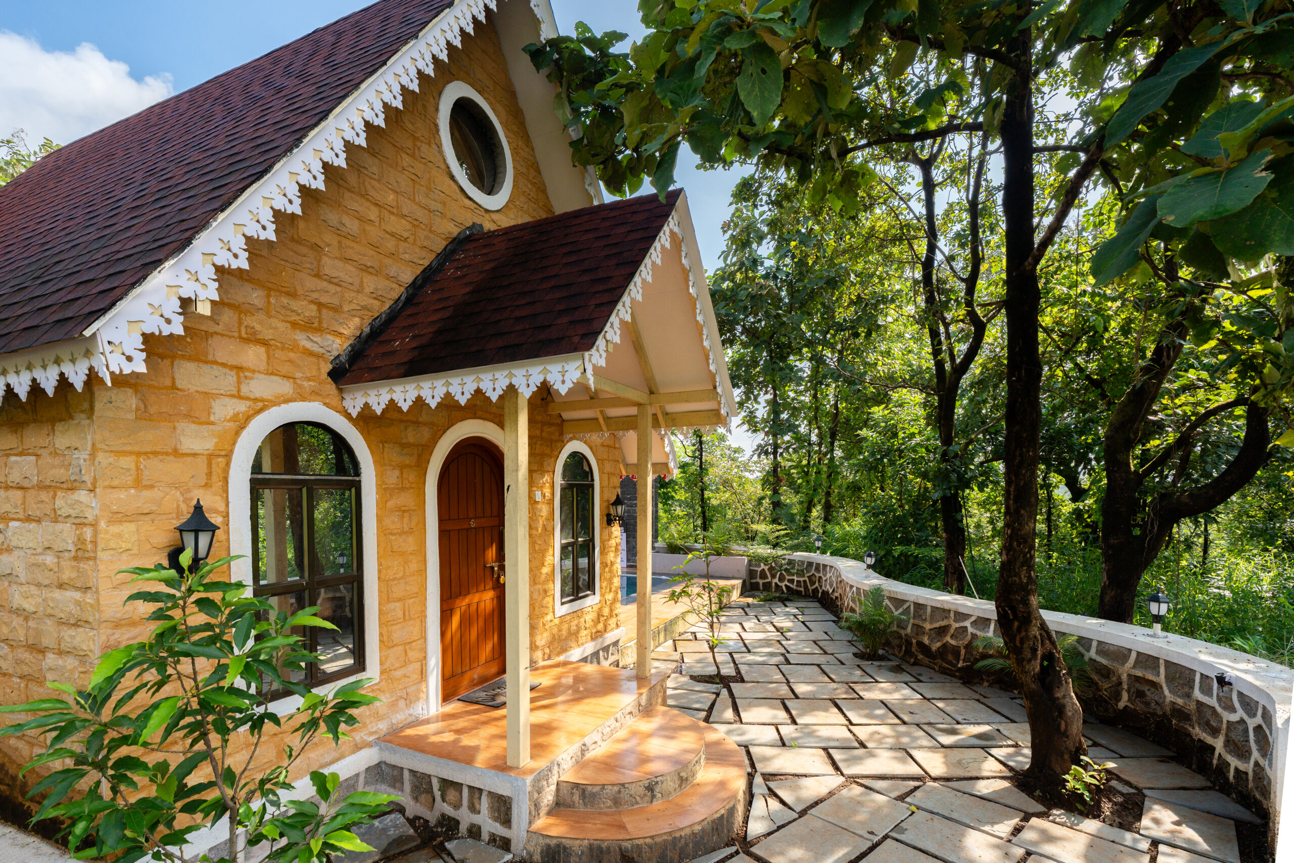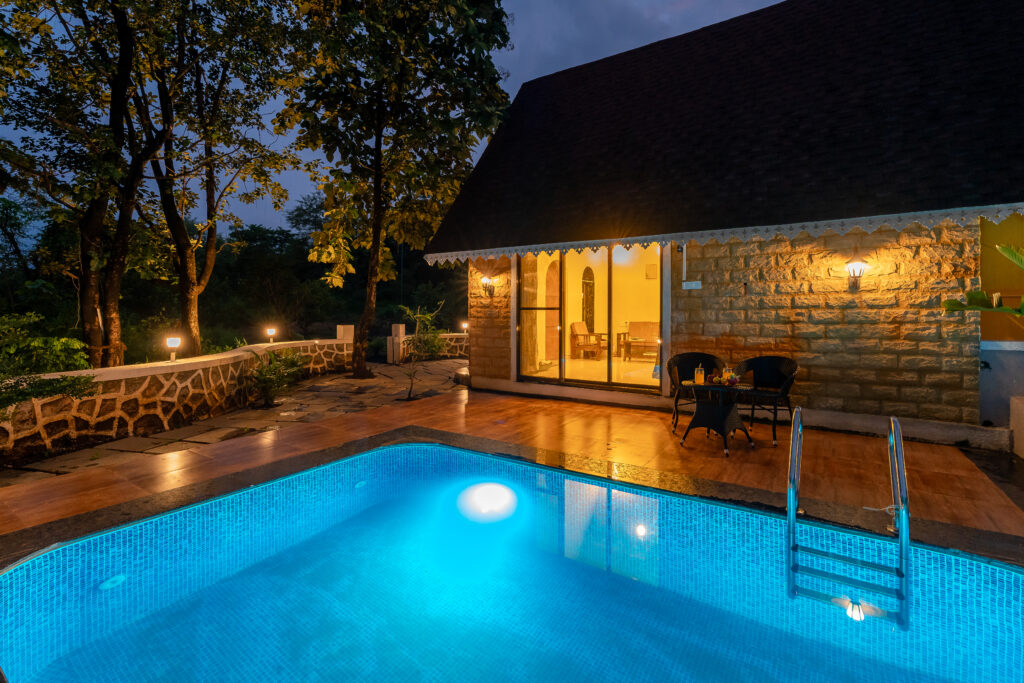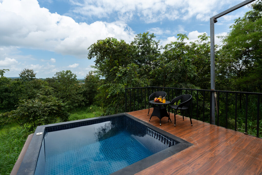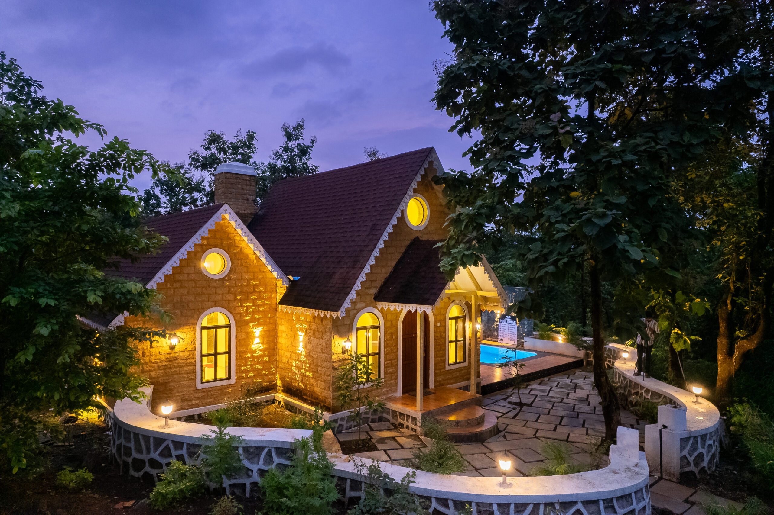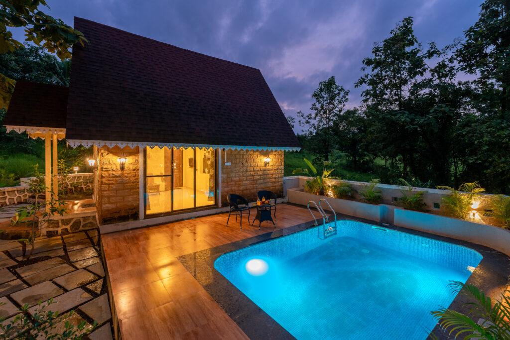 Welcome to Arborea Villa, a romantic 1BHK retreat in Karjat. Featuring a private pool and spacious living areas, this villa is perfect for a relaxing getaway.